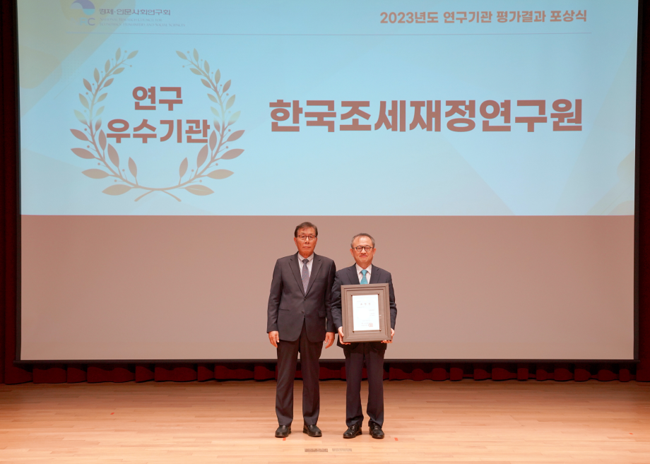□ 한국조세재정연구원(원장 김재진)은 최근 경제·인문사회연구회가 실시한 『2023년도 연구기관 평가』에서 최상위 등급(A)을 달성하고, 연구분야 우수기관상을 수상했다고 2024년 5월 30일 밝힘.
